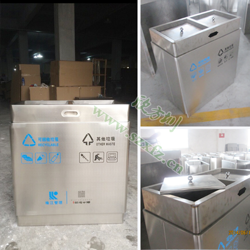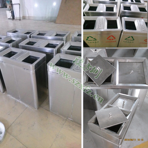 這批C185分類環(huán)保垃圾桶是采用304#優(yōu)質(zhì)不銹鋼材料模壓成型,厚度足1.2mm,里面配置了厚度為0.4mm的鍍鋅板內(nèi)桶,堅固耐用,不易破損。垃圾桶外觀為方形,閃爍著金屬的亮澤,高雅美觀,在制作方面也有精良的做工,注重細(xì)節(jié)的處理,做到無利口,不傷手! 桶身雙分類,正面絲印有“不可回收”和“其他垃圾”的分類標(biāo)志,具有耐火安全,抗高低溫,適合各種惡劣氣候條件,再加上產(chǎn)品表面光滑,亮麗廣泛適用于各種場所,是電梯口、寫字樓、學(xué)校、物業(yè)、賓館、酒店、機(jī)場、汽車站等擺放場地的首選。