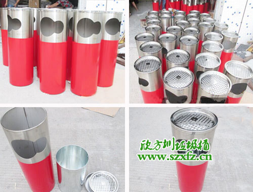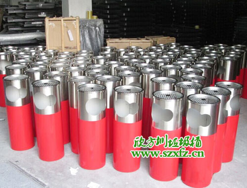 該款不銹鋼垃圾桶的規格為:250*700mm,垃圾桶是嚴格按照樣板的質量和顏色來生產的。不銹鋼垃圾桶是可以拆開,上桶與下桶現結合。整桶圓形狀,上桶頂部有投放煙頭,滅火隔離。不銹鋼上桶表面是不銹鋼砂鋼色,有兩個圓形組合的投放物口。不銹鋼垃圾桶下桶在原有的色彩上面,采用了噴塑工藝,用中國傳統顏色大紅色來襯托。整款不銹鋼垃圾桶設計簡單,外觀美觀,簡約大方不失本色。