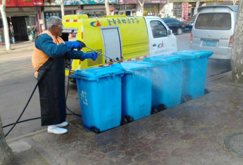 洗桶車自帶清水4.5噸,可一次清洗250個(gè)垃圾桶,洗下來的污水還能存在車內(nèi),絕對(duì)不造成污染。