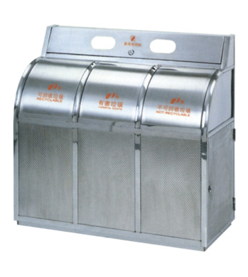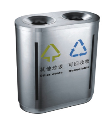 深圳新標準城中村街道社區(qū)不銹鋼五分類垃圾桶由有害垃圾、玻璃、金塑紙(為金屬、塑料、紙張的簡稱)、廚余垃圾、其他垃圾這5分類不銹鋼垃圾桶組合而成。其中金塑紙、其他垃圾日常產生量較大,所以分類收集容器也