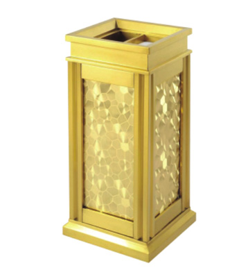 欣方圳為深圳嶺南天潤物業公司提供了一批室內垃圾桶,材質有鈦金類和鐵板噴塑類,外觀精美,使用價值高。 D272皇家座地煙灰桶規格:300*300*685,D295垃圾桶的規格為310*310*740,采用不銹鋼經鍍鈦處理,專業除