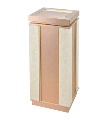 欣方圳為深圳嶺南天潤物業公司提供了一批室內垃圾桶,材質有鈦金類和鐵板噴塑類,外觀精美,使用價值高。 D272皇家座地煙灰桶規格:300*300*685,D295垃圾桶的規格為310*310*740,采用不銹鋼經鍍鈦處理,專業除