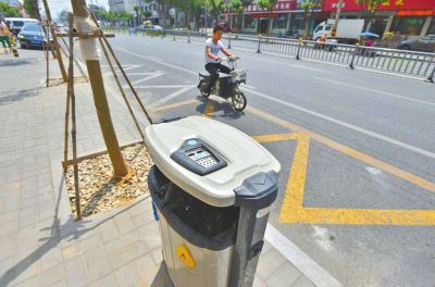 近日,街道馬路上出現新型垃圾桶,在頂蓋煙灰缸旁還有溫度表。看到了這款“高大上”的垃圾桶。它除了頂部安裝帶指針的溫度表外,其他地方與普通垃圾箱無異。