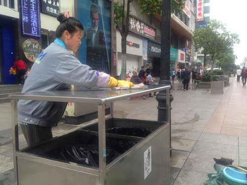 江漢路步行街地區(qū)管理辦公室相關(guān)負(fù)責(zé)人介紹,去年底,中山大道改造工程封路施工,江漢路每天往來人流量較以往增長兩到三倍。與此同時,封路后日均垃圾量激增至6噸,較以往增長3倍。該負(fù)責(zé)人解釋,由于上一批果皮箱容量太小,無法滿足需求,因此從去年開始,就在逐步設(shè)計新果皮箱的樣式大小。