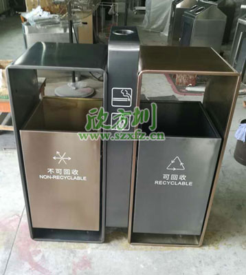 河南園林戶外不銹鋼電鍍分類垃圾桶時尚精致