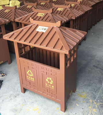 欣方圳景區(qū)仿古鋼制垃圾桶