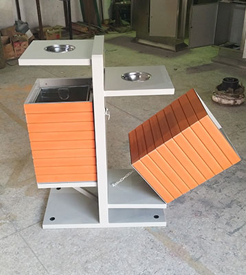 欣方圳定制鋼木分類垃圾桶桶身采用防腐、防水、防蛀的高檔木料精致而成,使其在露天環境下使用壽命更長,桶架無縫焊接上色高溫烤漆。
