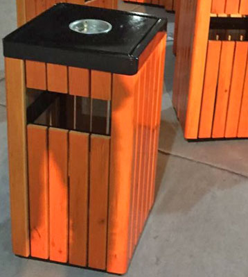 欣方圳戶外鋼木單桶垃圾桶批量生產圖