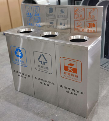 • 使用范圍:生活垃圾分類收集桶表面光滑、亮麗,是電梯口、寫字樓、學校、物業、賓館、酒店、機場、汽車站等室內場所擺放的首選。