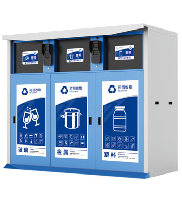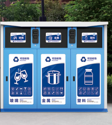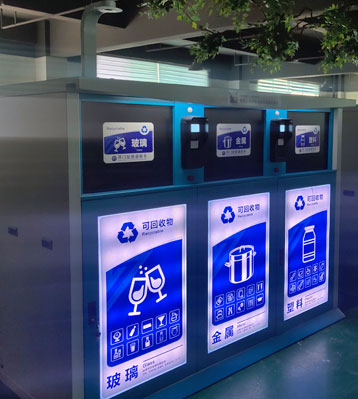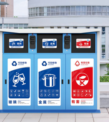 • 產品特點:社區智能分類垃圾桶回收紙張、塑料、金屬、玻璃、紡物、有害、廚余、其他等八種常見可回收再生資源。內置智能自動稱重模塊,后臺時刻檢測回收箱垃圾重量,滿溢自動停用功能并自動發送預警信息及時清運;帶感光燈控開關傍晚會自動開啟照亮功能;用戶身份識別系統,可追塑垃圾投放來源;帶管理系統積分兌換禮品。