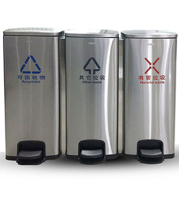 • 使用范圍:90L家用室內不銹鋼腳踏三分類垃圾桶廣泛應用于酒店、會所、咖啡廳、休閑中心、家用、賓館等場所擺放的首選。