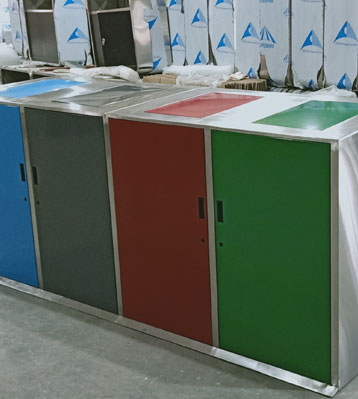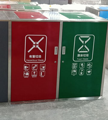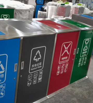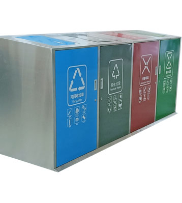 • 產品材質:社區戶外大容量四分類垃圾桶根據客戶需求可采用201#,202#,304#優質不銹鋼材質模壓或焊接成型,面板可分色烤漆美觀耐用,不易破損;耐火安全,適合各種惡劣氣候條件;金屬亮澤,高雅美觀,廣泛適用于各種戶外場所;內外表面光潔,減少垃圾殘留,易于清潔;配置鍍鋅板內桶,便于垃圾清倒。
